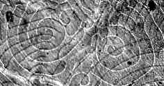 photo is a magnified image of a pair of counter rotating spirals, whose tips meander and trace